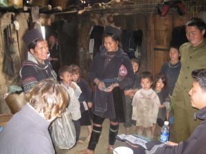 Outside our hotel a tribal young mother with her baby hawks her family’s embroidery. She walks 5 miles a day through the mountains with her little girl on her back. Her name is Song. Her English, learnt from tourists, is surprisingly good. We pay her as a guide to accompany us to her home village, to talk about her schooling, the employment possibilities for young people, and what she hopes for her children. We tell her of our ideas for English teaching here and asks what she thinks of them.